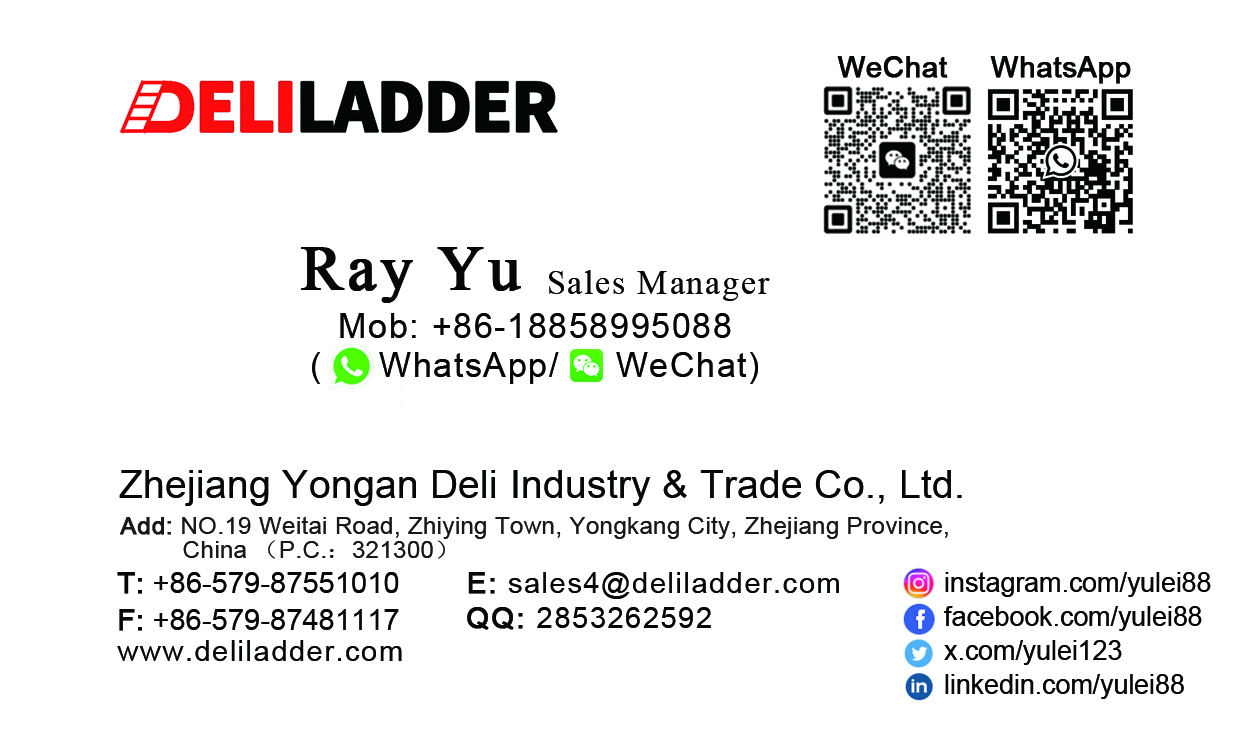 Zhejiang Yongan Deli Industry and Trade Co., Ltd (famous as DELI LADDER) is a professional manufacturer and supplier of various ladders, including Telescopic Ladders, Multi-purpose Ladders, Extension Ladders, Household Ladders, Step ladders, Scaffold Ladders, Folding Ladders, accessory of ladders. Our products are mainly sold in USA, Germany, UK, France, South America and Africa.